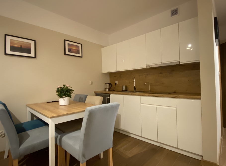 Apartament typu Deluxe (4 i 5 osobowy), został urządzony tak, aby zapewnić Państwu luksus i wygodę. Lokal dysponuje w pełni wyposażonym aneksem kuchennym, umożliwiającym przygotowanie posiłku, składa się z pokoju dzienno-sypialnianego oraz osobnej sypialni z dużym łóżkiem małżeńskim.